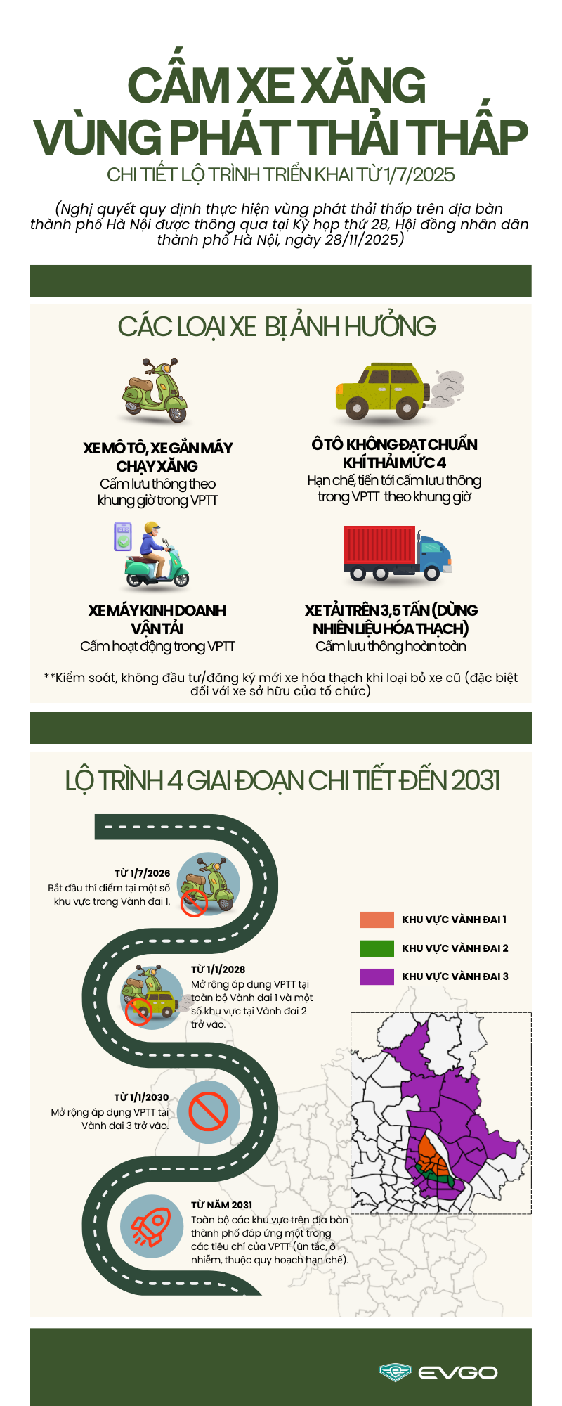 Lưu ý: Đây là giai đoạn thí điểm đầu tiên, trọng tâm là xe máy cá nhân chạy xăng trong khu vực lõi.
