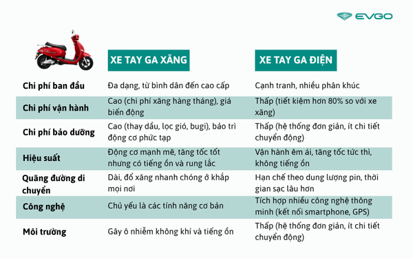 1. So sánh chi tiết về các yếu tố cốt lõi: Xe tay ga điện với Xe tay ga xăng